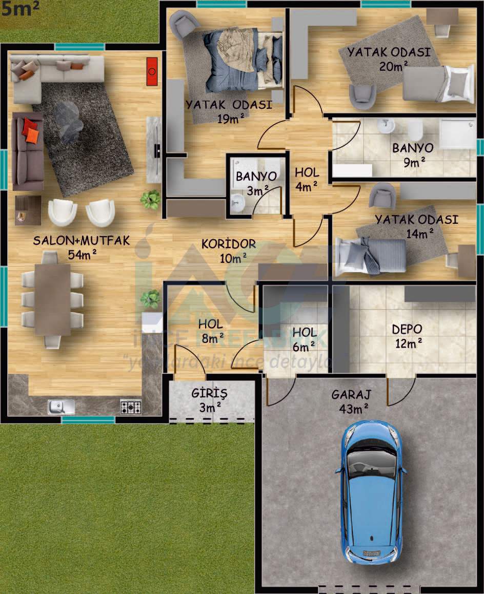IC618 205m² 3+1 Tek Katlı Çelik Ev
