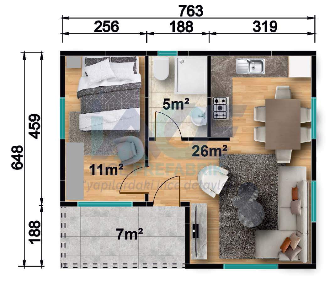 IP103 49m² 1+1 Tek Katlı Prefabrik