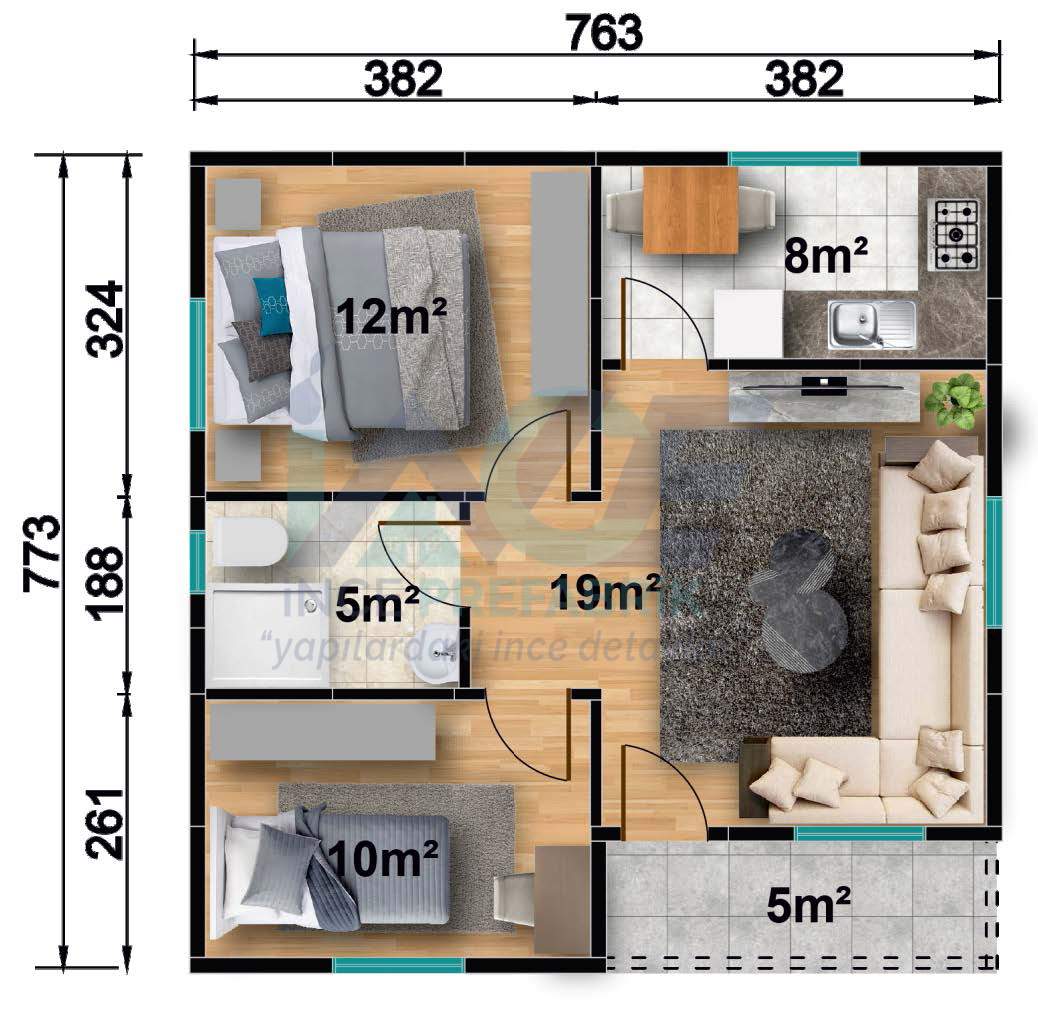 IP105 59m² 2+1 Tek Katlı Prefabrik