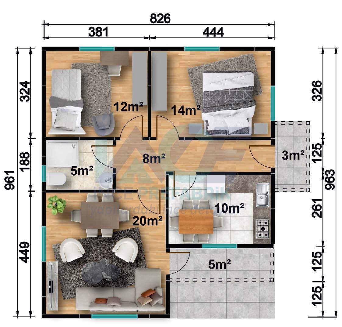 - Dış Duvarlar 10cm İç Duvar 6cm - 10cm (Olisiyonel)
