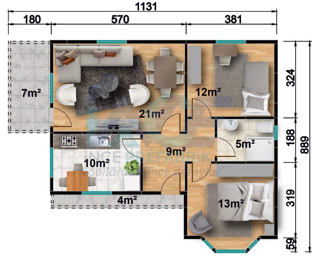 IP115 81m² 2+1 Tek Katlı Prefabrik